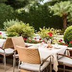 Śniadanie podawane jest w restauracji. Podczas pobytu w obiekcie goście mogą wybierać spośród pobliskich lokali gastronomicznych, takich jak restauracja Sketch Food Cafe & Cocktailbar, w odległości 5-minutowego spaceru, czy restauracja Bistro Therme Meran w odległości 5 min spacerem.